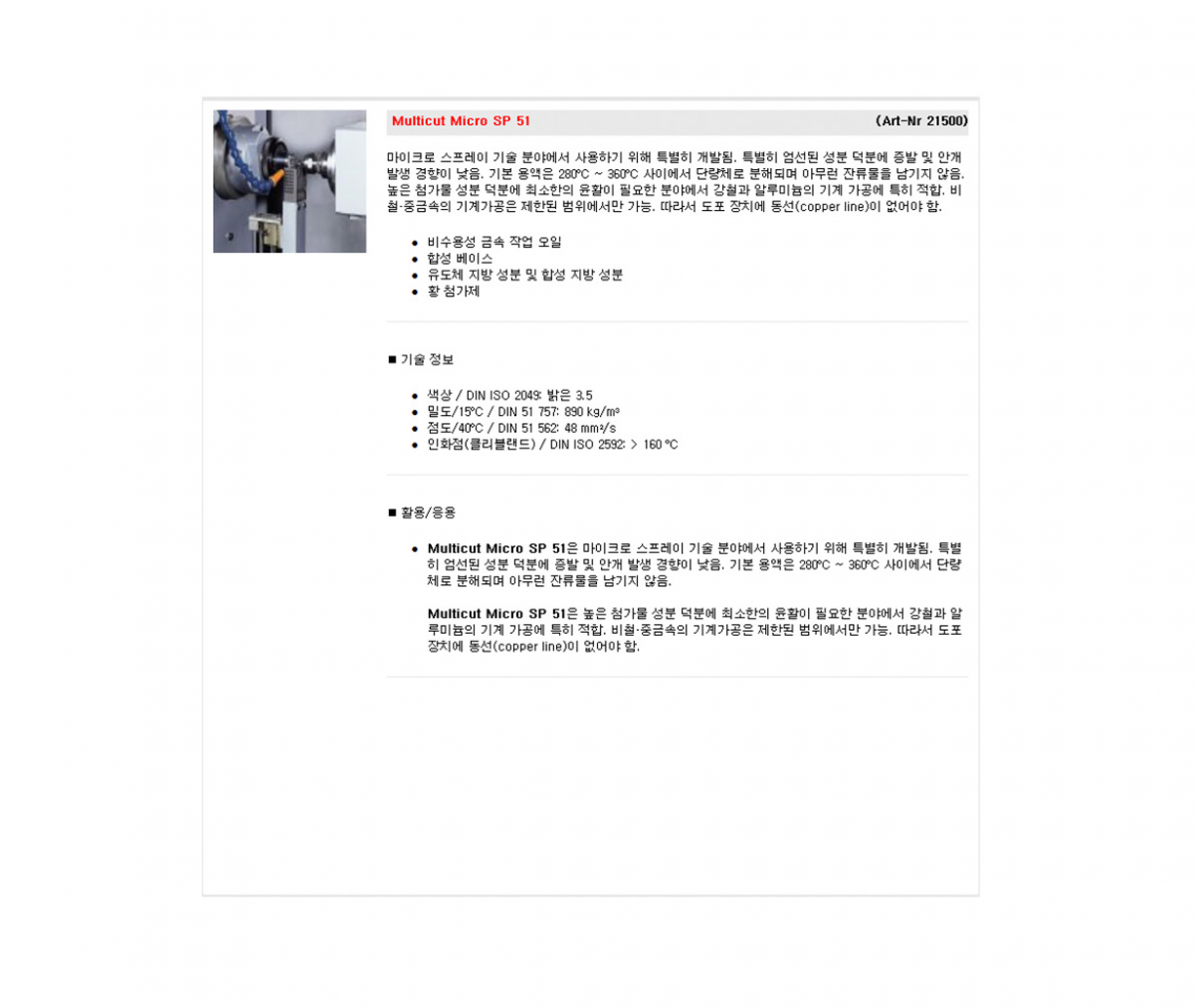[젤러그멜린] 비수용성절삭유(MQL오일)